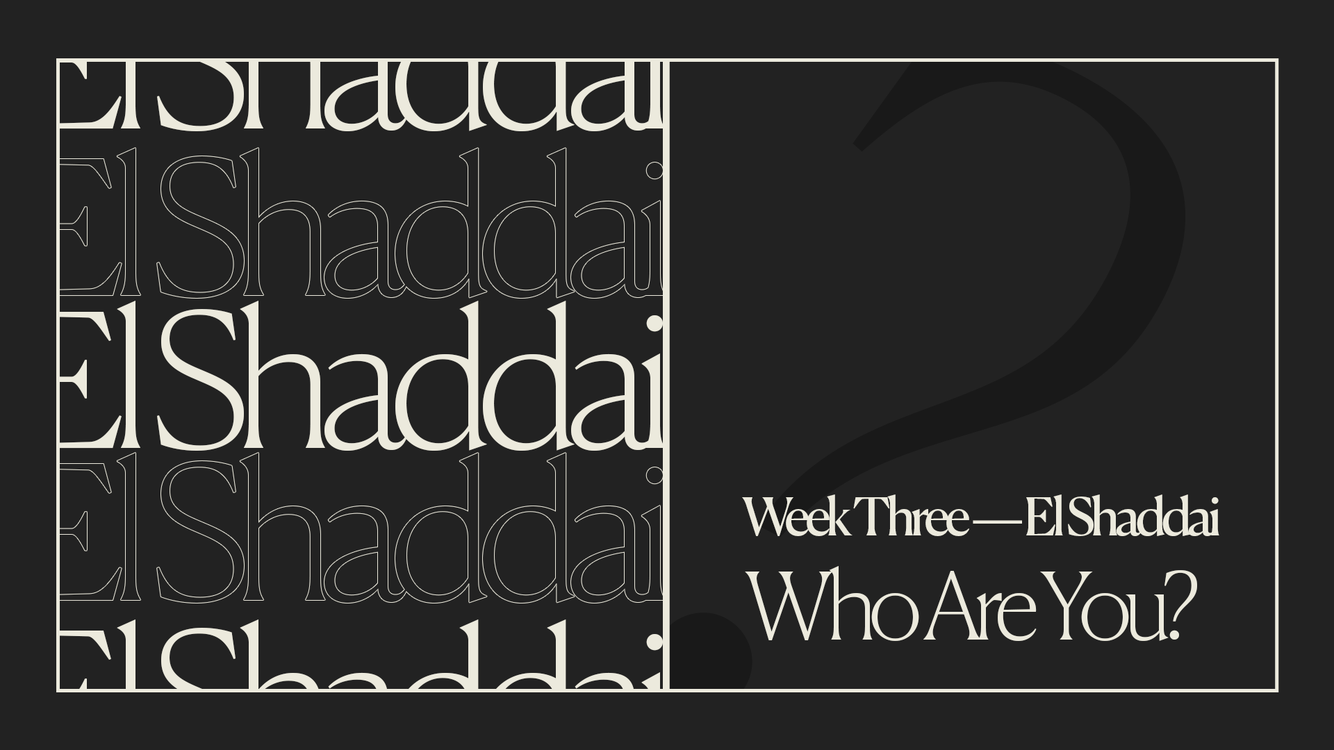 Who Are You is 12-week message series designed to unpack the descriptive names of God and how they can impact our lives! Join Pastor Kevin and GFBC as we take a deep dive into the character and nature of our great God, Jehovah! His names are much more than just titles. His names provide incredible insight of who He is and what He can do.